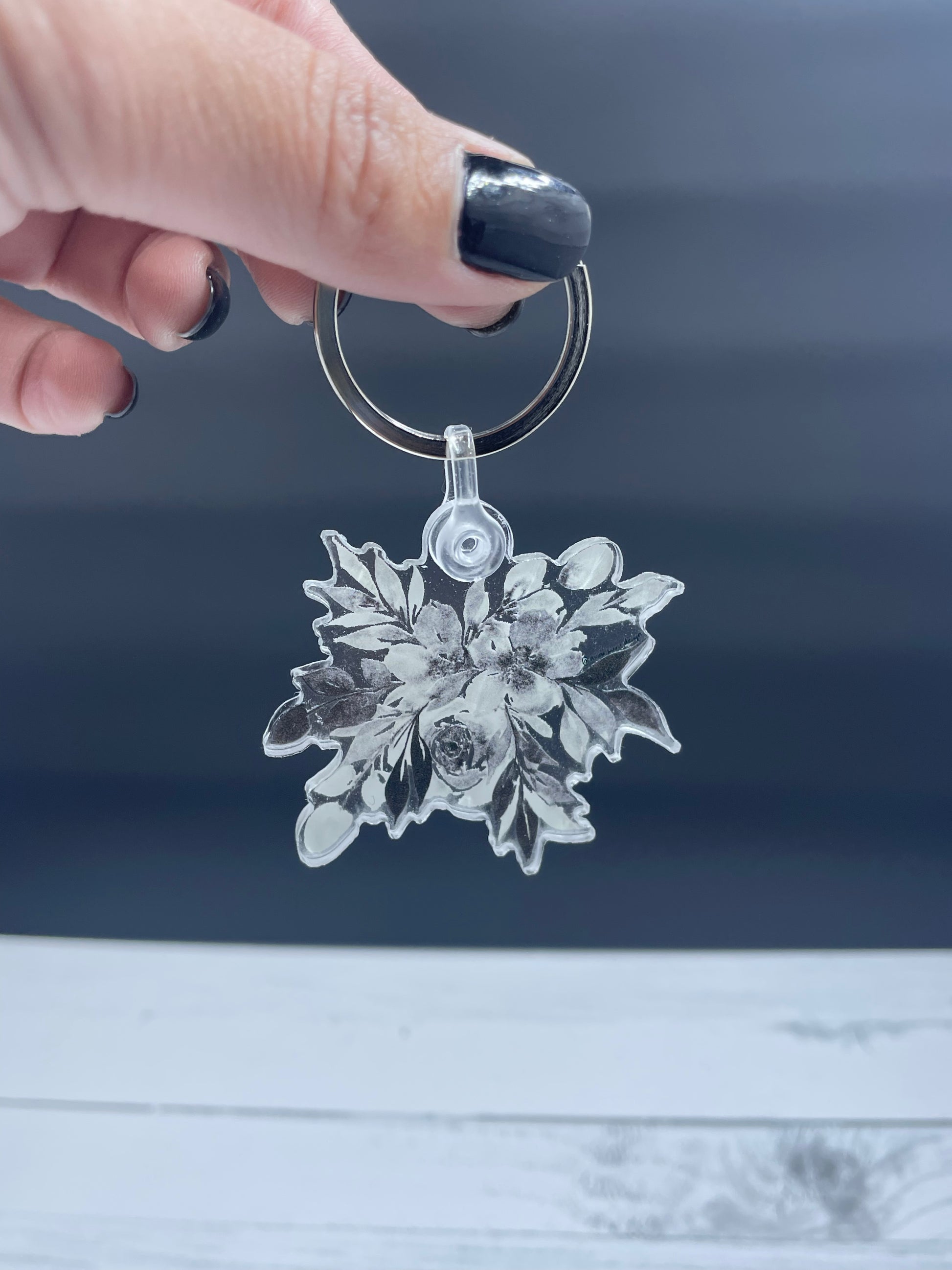 Keychain - Black & White Floral Watercolor
